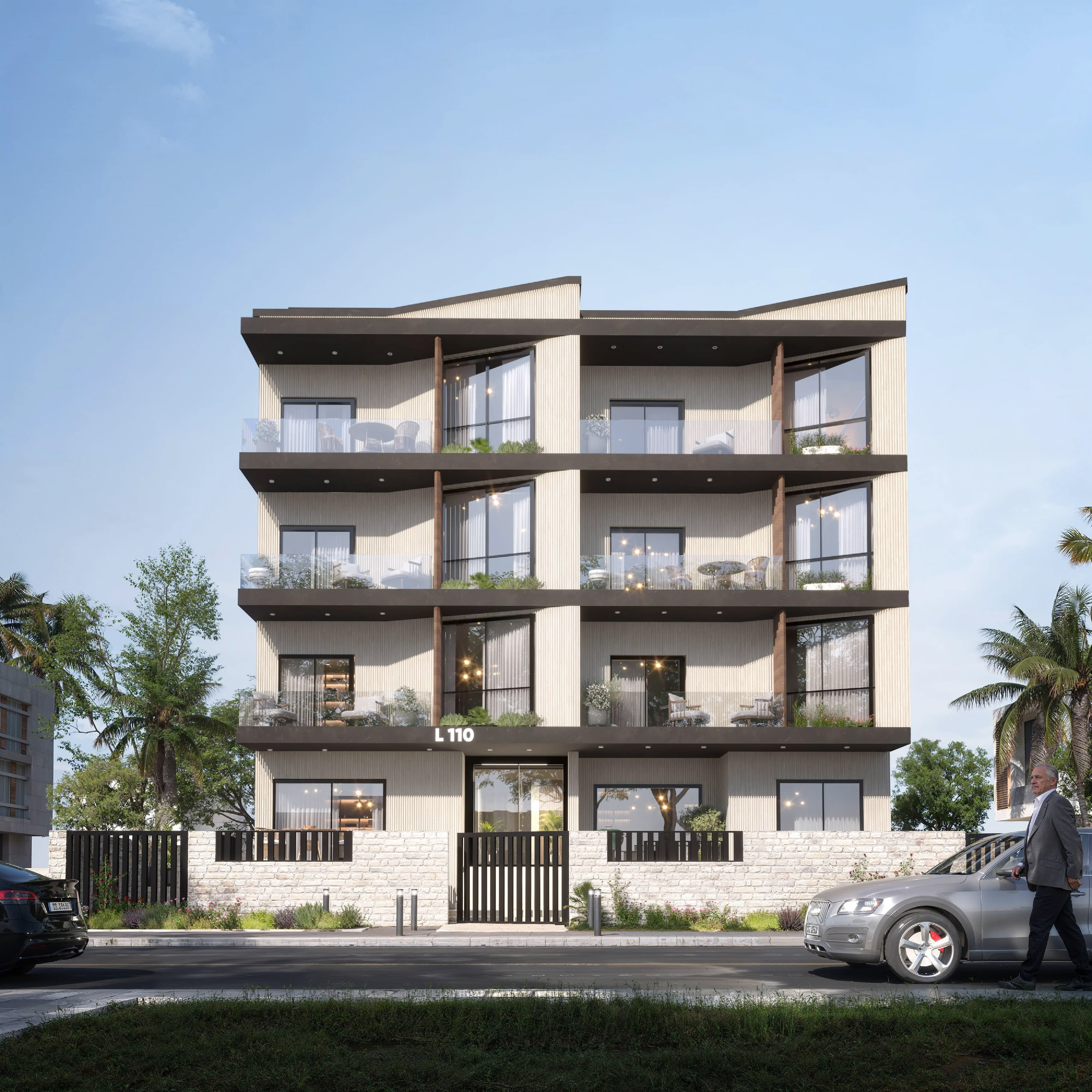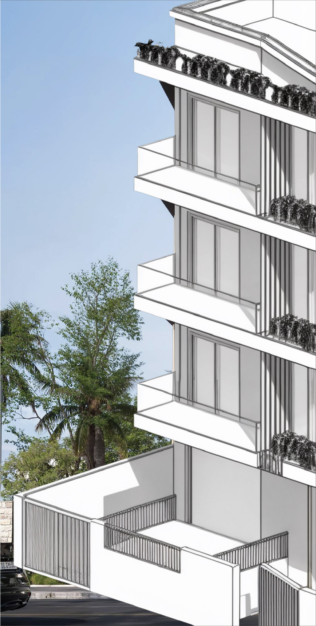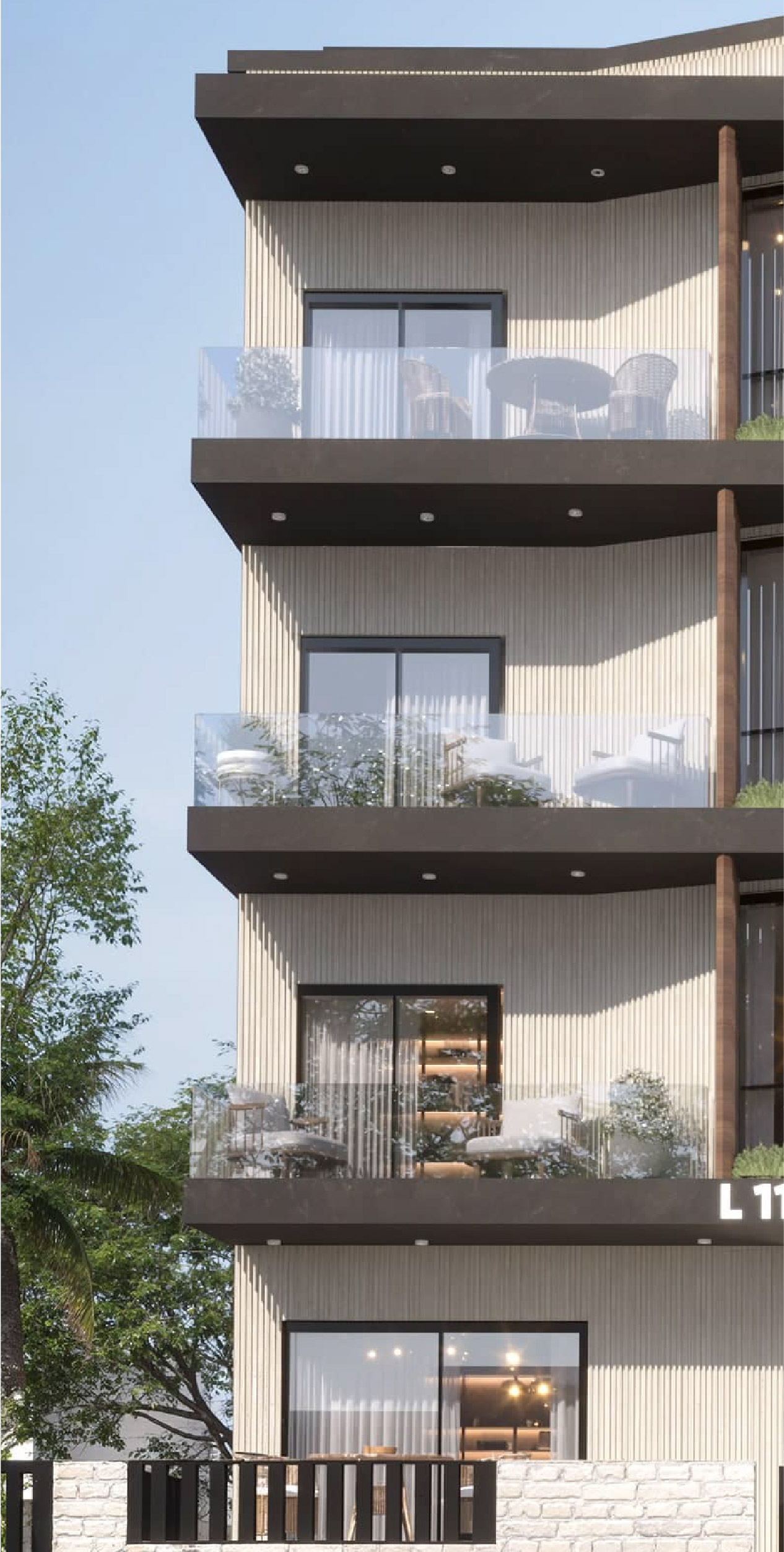 This residential building showcases a sophisticated interplay of cascading balconies that create a dynamic, multi-layered façade. This design not only enhances spatial expression and volumetric depth but also improves spatial privacy and passive environmental performance. The staggered arrangement of interlocking balconies facilitates cross-ventilation and maximizes daylight penetration throughout the units.