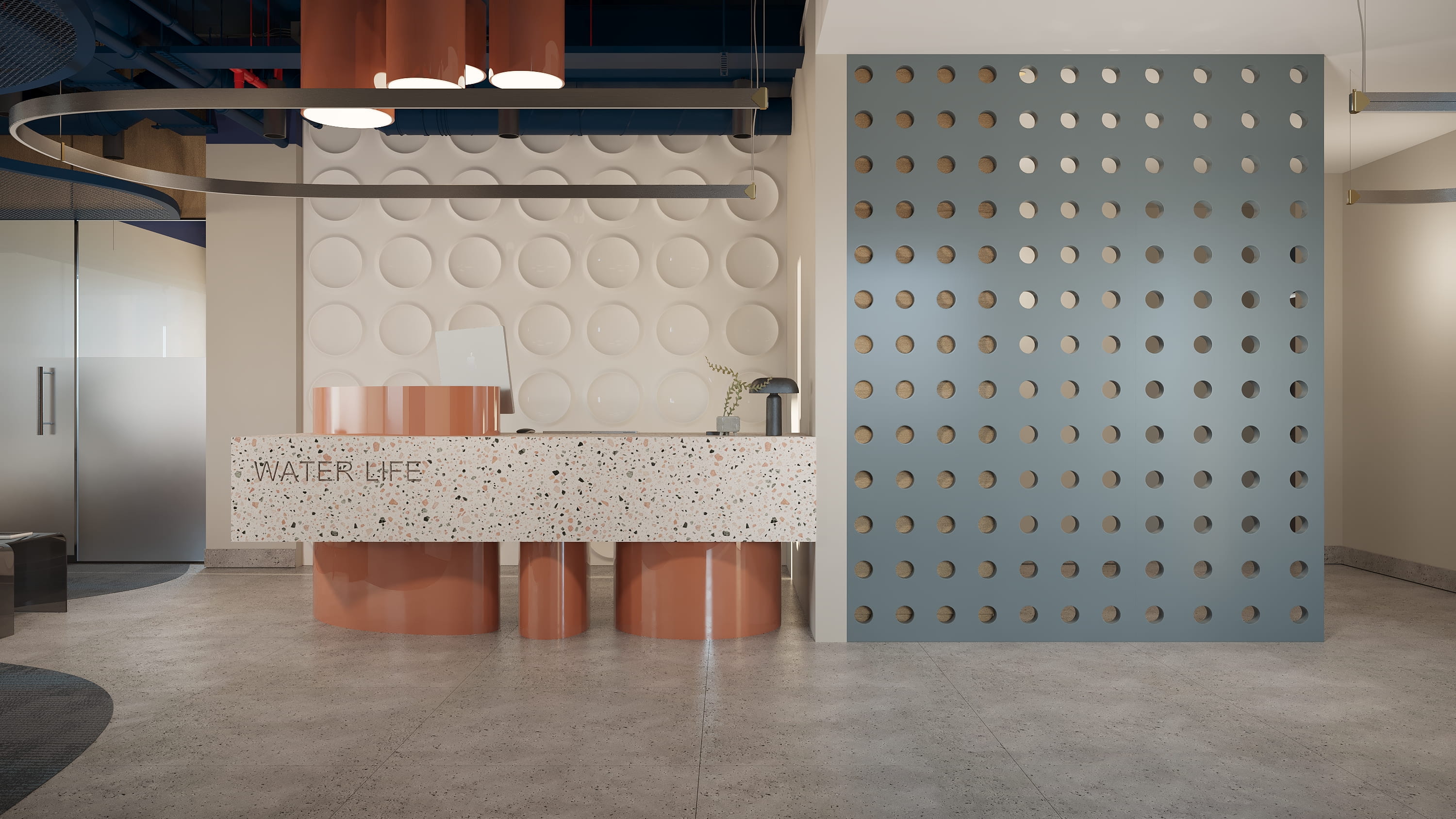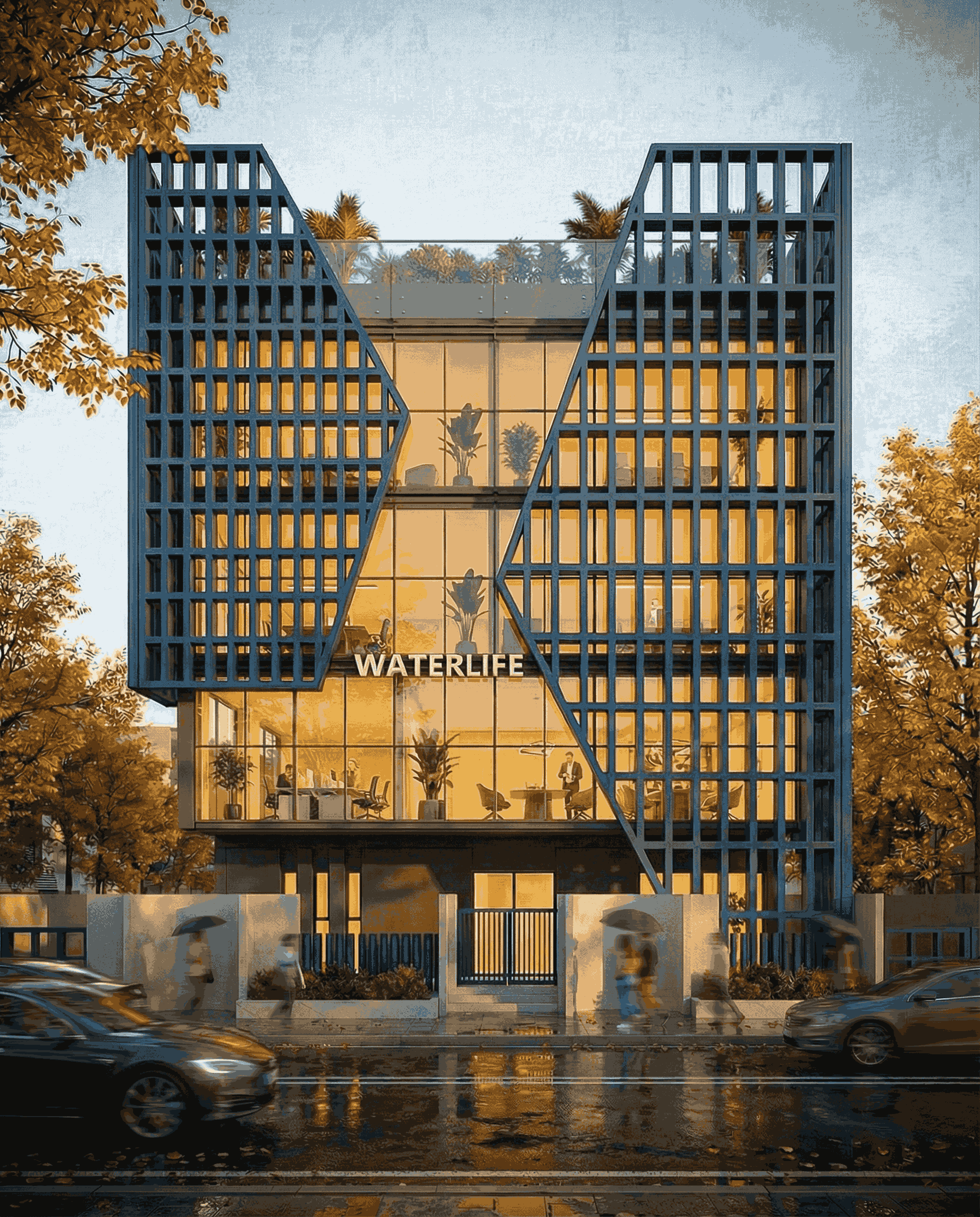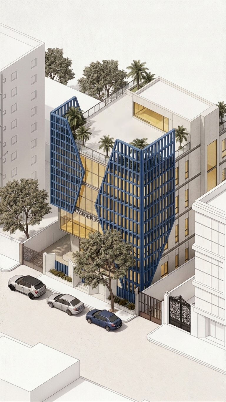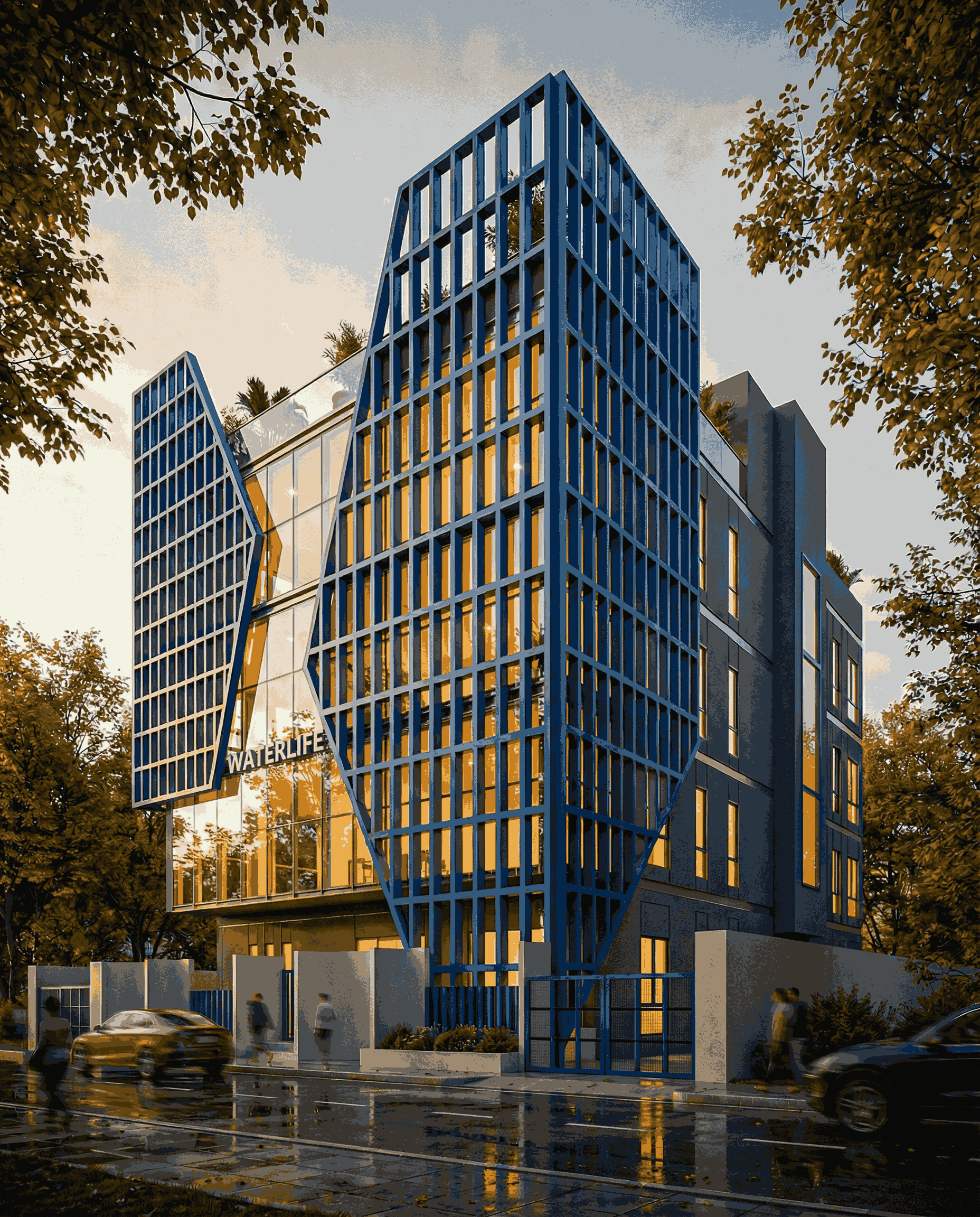 The Waterlife Admin Building project is a renovation and facade transformation of an existing administrative building. The design focuses on redefining the building’s identity through a contemporary facade system while reorganizing the interior spaces to create a more efficient and modern workplace environment.