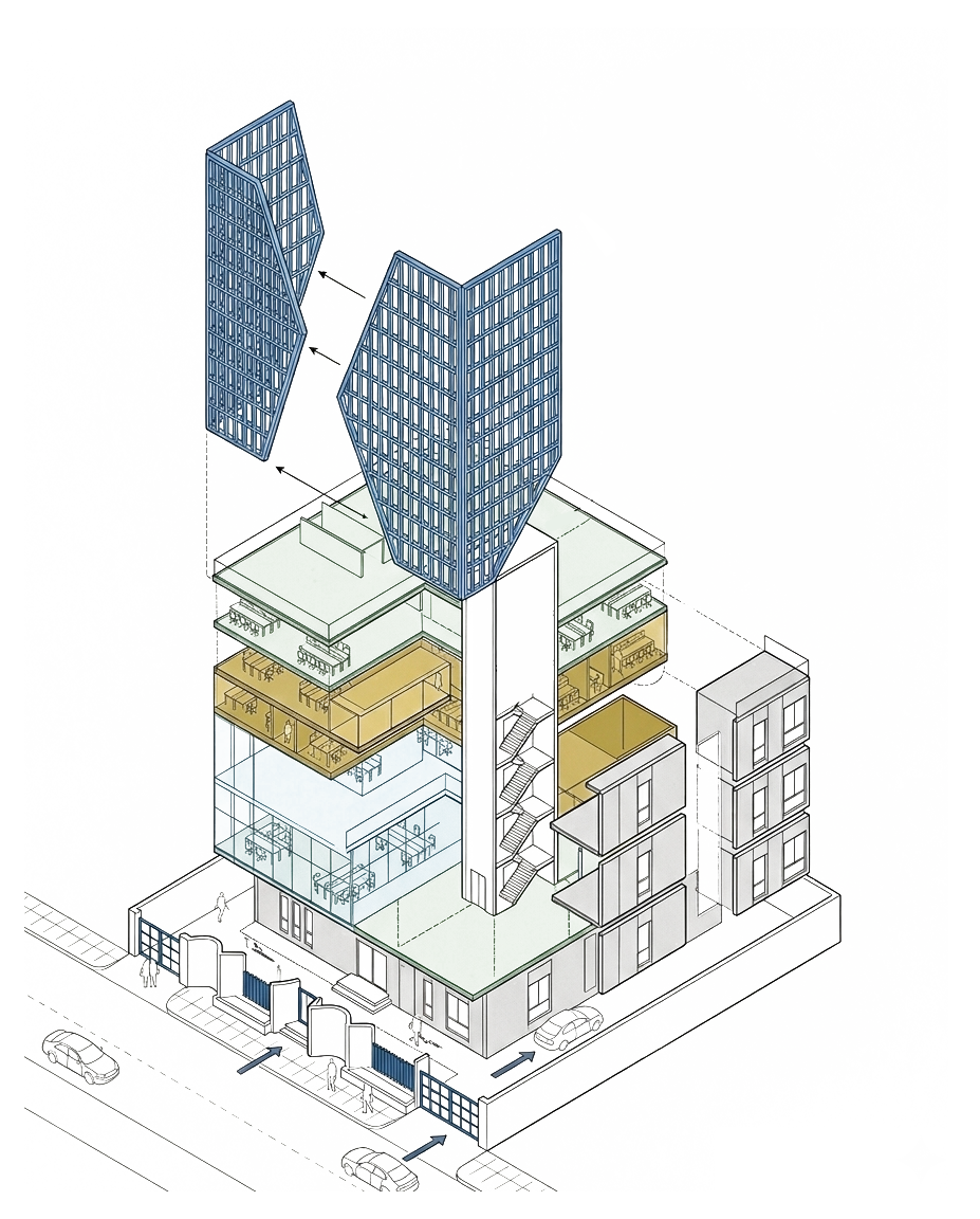 The architectural approach was based on introducing a layered facade system that creates depth, shadow, and rhythm across the elevation. A modular grid was developed to organize the facade elements, ensuring consistency, constructability, and cost efficiency while giving the building a strong visual identity.